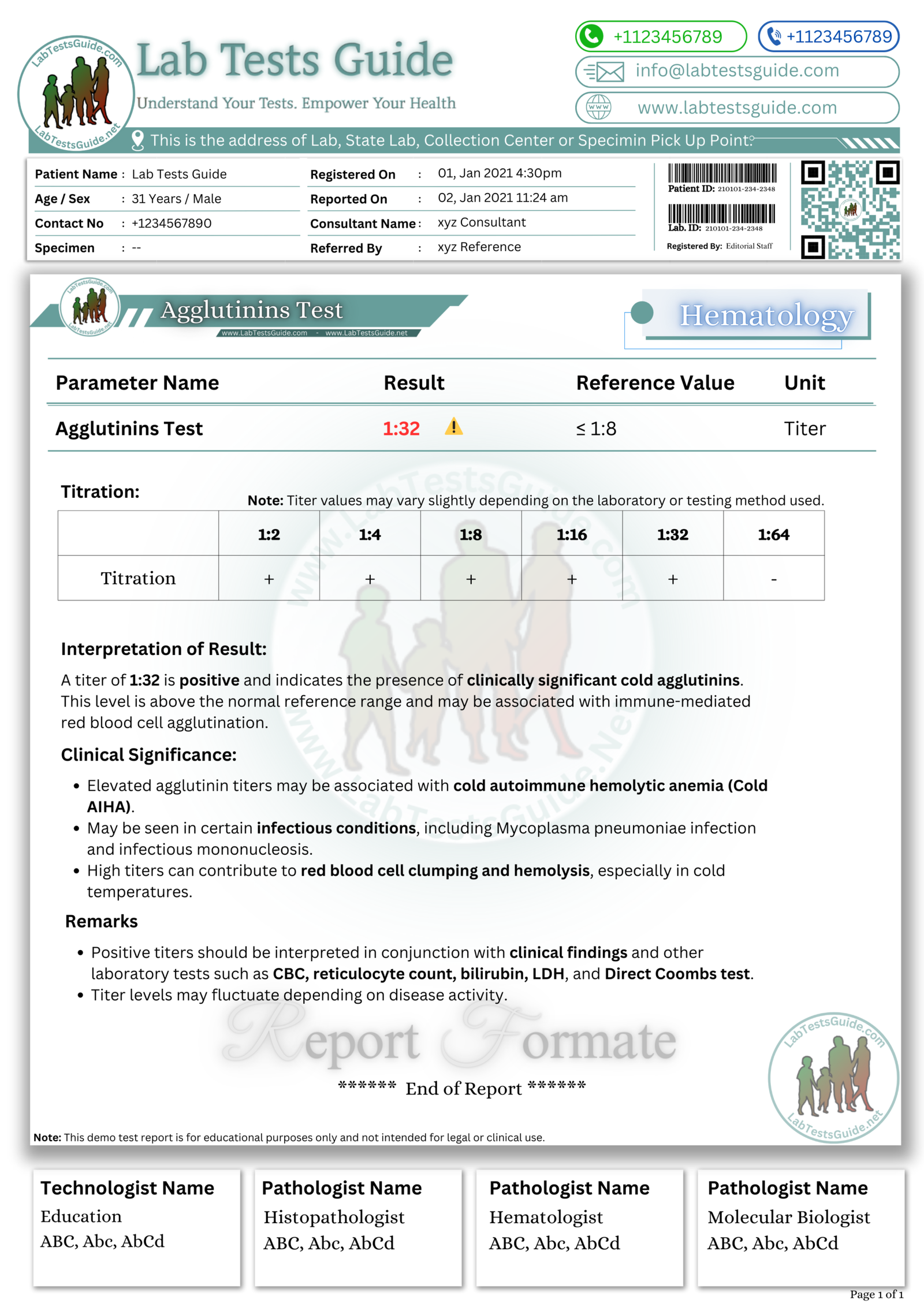 Positive Agglutinins Test Demo Report Format (PDF) |