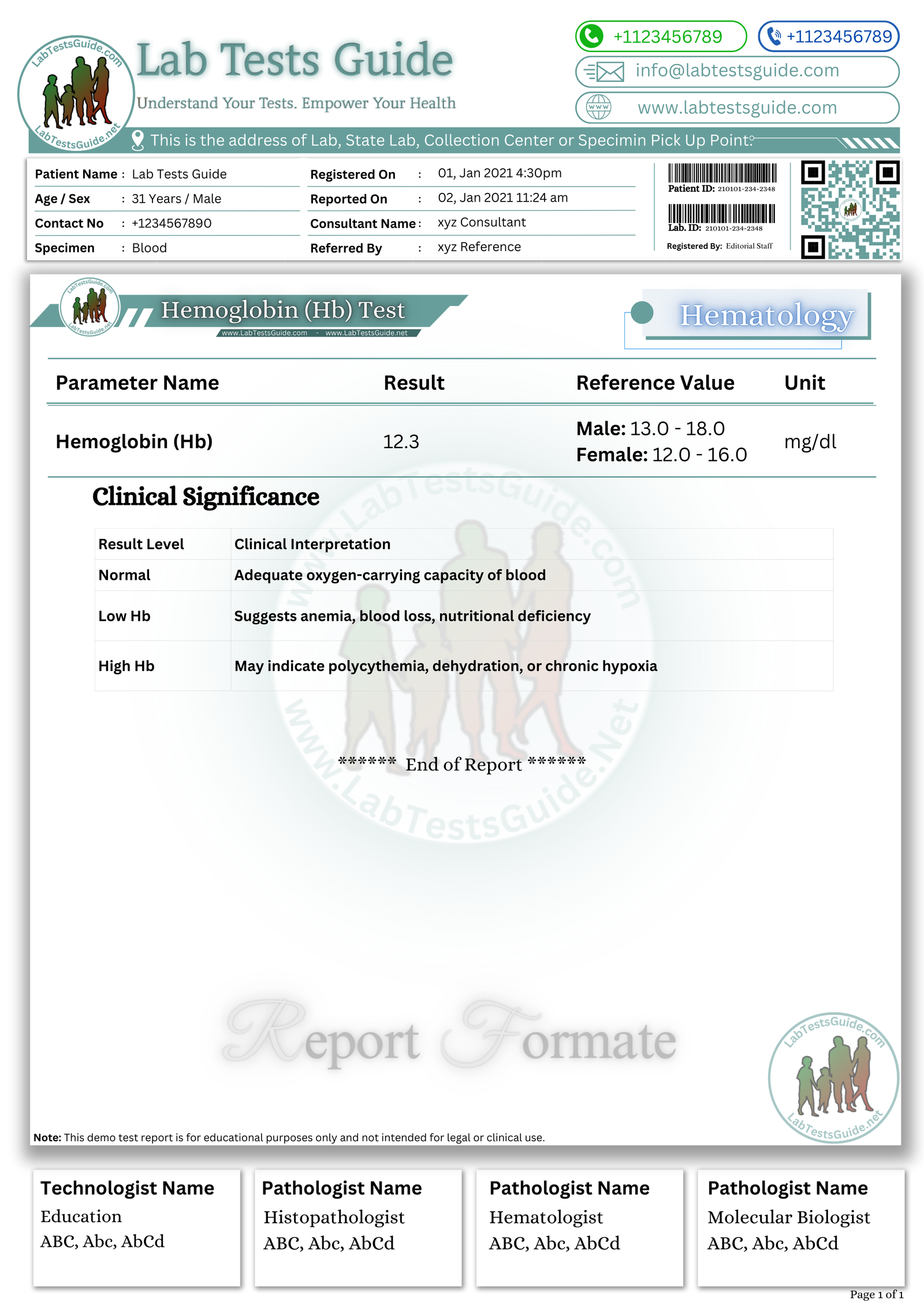 Hemoglobin (Hb) Test Report Format (PDF) | |